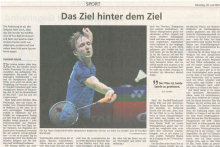 Fun-Baller verpassen ÜberraschungAm Wochenende, 23./24. April 2022, unterlagen die für das Final4 direkt qualifizierten Dortelweiler Badmintonspieler in einem spannenden Halbfinalmatch dem bisherigen Meister vom 1. BC Saarbrücken Bischmisheim nach viereinhalb Stunden Spielzeit denkbar knapp mit 3:4. 6. März: 7:0 Pflichtsieg in JenaMit einem pflichtgemäßen 7:0 gewann der SV Fun-Ball Dortelweil in der 1. Badminton Bundesliga sein Auswärtsspiel beim Tabellenletzten aus Jena. 26./27. Februar: Direkte Qualifikation zum Final4 zum Greifen nahMit 2 weiteren Siegen am vergangenen Wochenende hat die 1. Badmintonmannschaft des SV Fun-Ball Dortelweil in der 1. Bundesliga die Tür zur direkten Qualifikation fürs Final4 weit aufgestoßen. Perfektes Wochenende für die 1. Bundesliga12./13. Februar: Der SV Fun-Ball Dortelweil hat mit zwei unerwartet deutlichen Siegen am Wochenende einen großen Schritt in Richtung Final Four der Badminton-Bundesliga gemacht. Knappe Niederlage im Spitzenspiel31.01.2022: Am vergangenen Wochenende hatte der SV Fun-Ball Dortelweil als Tabellenzweiter in der 1. Badminton Bundesliga den direkten Verfolger und amtierenden Deutschen Meister, den 1. BC Saarbrücken Bischmisheim, zu Gast. Die zwei nächsten Auswärtssiege für den SV Fun-Ball DortelweilMit zwei weiteren Siegen kehrte die 1. Badmintonmannschaft des SV Fun-Ball Dortelweil vom Doppelspieltag auswärts zurück. 20.11.21: Tabellenführung knapp verteidigtAm Samstag ging es für den SV Fun-Ball Dortelweil mit seiner 1. Bundesligamannschaft zum Spitzenspiel des 8. Spieltages beim Meisterschaftsmitfavoriten nach Saarbrücken, die aktuell auf dem 3. Tabellenplatz stehen. 31.10.21: Nächster KantersiegAuch am 7. Spieltag in der 1. Badminton-Bundesliga zeigte der SV Fun-Ball Dortelweil im Heimspiel gegen den SV Jena keine Schwächen und siegte überlegen, im Eilzugtempo nach nur gut eineinhalb Stunden, mit 7:0 und ist damit weiterhin nicht erwarteter Tabellenführer in der 1. Bundesliga. 23./24.10.: Wochenende mit zwei Kantersiegen in der Badminton-BundesligaAm letzten Wochenende konnte der SV Fun-Ball Dortelweil mit seiner Ersten in der Badminton Bundesliga mit zwei Kantersiegen (jeweils mit 6:1) in heimischer Halle die maximale Punkteausbeute von 6 Punkte einfahren. Aber auch die 2. Mannschaft gewann beide Heimspiele (6:1 und 5:2) und machte mit 5 Punkten einen großen Schritt ins Tabellenmittelfeld. Erste Tabellenpunkte für die 2. Mannschaft!Bericht vom 25./26.09.2021: Wang dominiert Damen-EinzelDortelweil nach starkem Wochenende auf Rang eins. Pressebericht Frankfurter Neue Presse vom 22.09.21 Ein nahezu perfektes Wochenende in der Badminton-BundesligaBericht vom 18./19.09.21: Mit zwei Siegen und 5 Punkten im Gepäck kehrten die Dortelweiler Badmintonasse in der 1. Bundesliga von den Auswärtsspielen in Schorndorf (bei Stuttgart) und München zurück. Solide Fun-Ball-OuvertüreBundesligist Dortelweil holt daheim vier Punkte. Pressebericht Frankfurter Neue Presse vom 15.09.21 Saisonauftakt in der Badminton Bundesliga mit Licht und SchattenBericht vom 11./12.09.21: Während die 1. Mannschaft in der 1. Liga mit einer knappen 3:4 Niederlage und einem 6:1 Kantersieg gleich 4 Punkte erzielte, musste sich die 2. Mannschaft in der 2. Liga Süd mit 2 Niederlagen abfinden. Internationales FlairDortelweil ist heiß auf den Bundesliga-Start. Pressebericht Frankfurter Neue Presse vom 08.09.21 Kai Schäfer wird Deutscher MeisterFun-Baller triumphiert im Finale gegen Fabian Roth. Pressebericht Frankfurter Neue Presse vom 31.08.21 Das Ziel hinter dem ZielPressebericht Frankfurter Neue Presse vom 20.07.21 zur Oympia-Teilnahme unseres Spielers Kai Schäfer Kai Schäfer fährt zu den Olympischen Spielen!Der Erstliga-Spieler des SV Fun-Ball ist vom deutschen Verband für Tokio nominiert worden. 2. BundesligaNächster Fun-Ball Aufstieg, auch die "Zweite" darf hoch. Spieltage 4 und 5 in der 2. BundesligaMit zwei souveränen Siegen macht die Mannschaft einen weiteren Schritt zurück ins deutsche Oberhaus. Fun-Ball mit perfektem WochenendeDer SV Fun-Ball Dortelweil hat am ersten Doppelspieltag der Zweitliga-Saison 2020/21 eine überzeugende Vorstellung abgeliefert. Mit zwei dominanten Heimsiegen untermauerten die Wetterauer ihre Ambitionen auf eine Rückkehr in die höchste deutsche Spielklasse. Saisonauftakt geglücktSonntag, 4. Oktober: Dortelweil gewinnt ohne Spielverlust gegen den TV 1884 Marktheidenfeld mit 7:0 Kai kehrt zurückInterview mit unserem Spieler Kai Schäfer vor dem Saisonstart Badminton-Bundesliga und Regionalliga stehen vor SaisonstartAb dem 03. Oktober startet die neue Badmintonsaison mit den Spielen der 2. Bundesliga Süd und der Regionalliga Mitte, in der der SV Fun-Ball Dortelweil mit der 1. und 2. Mannschaft vertreten sein werden. Förderkreis „CLUB DER 111er“ gegründetMit der aktuellen Gründung des Förderkreises „CLUB DER 111er“ wollen wir die Spitzen- und Jugendförderung im Badminton in unserem Verein stärken. Spenden Sie 111 Euro, oder auch gerne mehr und Sie gehören damit zu den Top-Förderern des SV Fun-Ball... Revanche im Hessen-Derby glücktDie 1. Mannschaft des Fun-Ball-Dortelweils erkämpft sich einen 5:2 Erfolg im Hessen-Derby gegen die Nachbarn vom Fuße des Taunus. Am darauffolgenden Auswärtsspieltag musste sich das Team um Kapitän Thomas Legleitner knapp dem Gegner aus Marktheidenfeld geschlagen geben. 7:0 Kantersieg zum Jahresbeginn 2020Mit einem 7:0 Kantersieg hat die erste Mannschaft in der 2. Badminton Bundesliga einen furiosen Jahresstart hingelegt. In heimischer Halle wurde der BC Remagen, dem man noch im Hinspiel mit 3:4 unterlegen war, ohne Spielgewinn abgefertigt. < Zurück 1 2 Weiter >